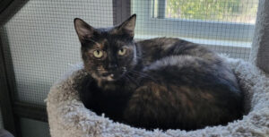 A gorgeous tortie who loves pets but is too shy to get them.
