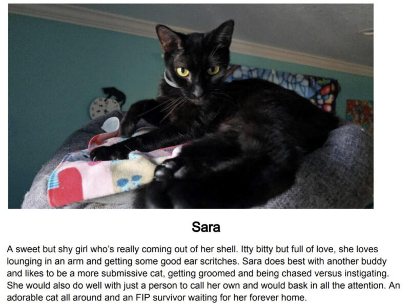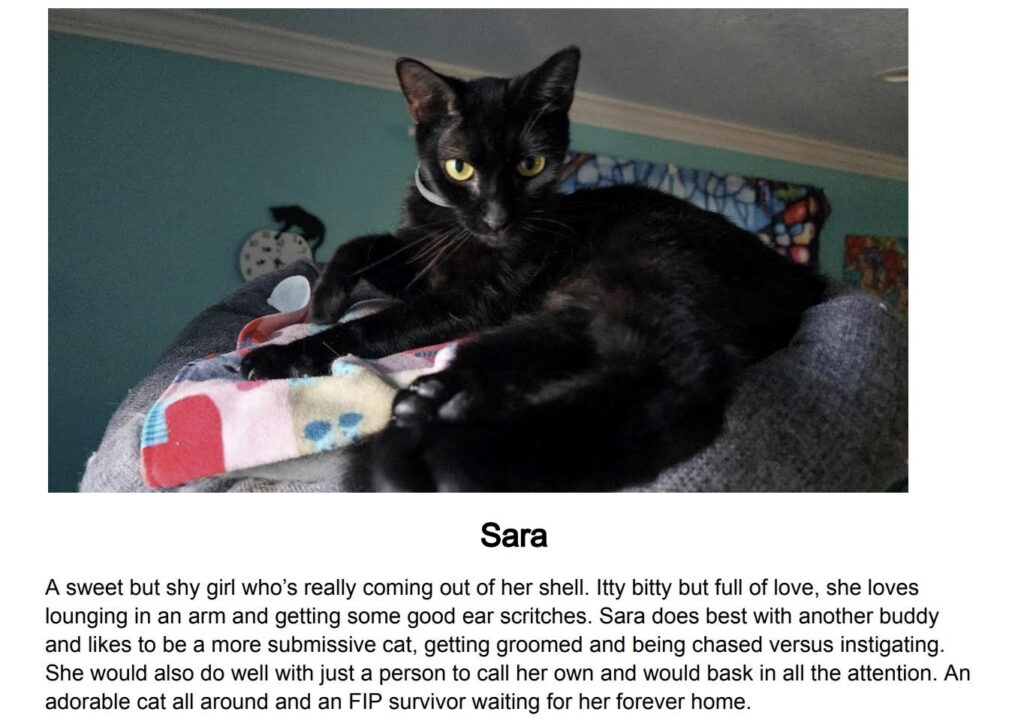 100% of your donations go directly to help these loving, needy cats. If you are able to help, please make out a check payable to: